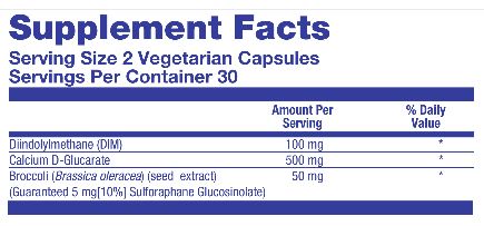 DIM과 Calcium D-Glucarate를 브로콜리 씨앗 추출물과 함께 결합한 제품으로 두 가지를 따로 복용할 필요가 없어 경제적이다.