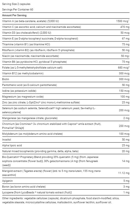 Two-Per-Day 멀티비타민은 필수 비타민, 미네랄 및 기타 영양소를 완벽하게 제공하며, 권장 영양소 섭취 기준(RDA)을 충족하거나 초과하는 수준으로 함유하고 있습니다.
