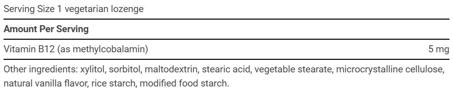 B12 Elite Lozenges 제품은 1정당 5mg의 메틸코발라민을 함유하고 있어, 신체가 빠르게 흡수하고 활용할 수 있습니다.