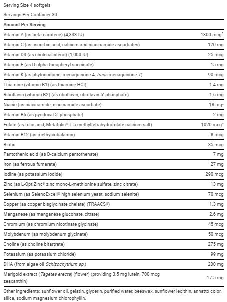 * Prenatal Advantage는 콜린의 일일 권장량 50%를 포함하며, 이는 태아의 건강한 뇌 및 신경계 발달을 지원하는 데 중요한 역할을 합니다.