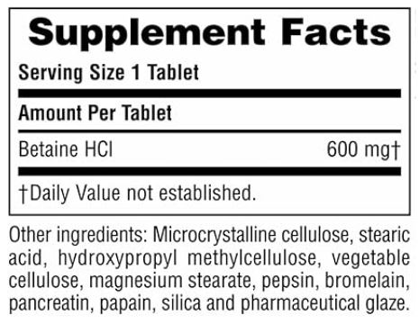 NaturesPlus의 Betaine Hydrochloride 정제로 이 중요한 성분의 이점을 경험해보세요. 믿을 수 있는 베타인 HCl 보충제입니다! 정제로 되어있어 식도에 걸리지 않고 잘 내려가는 이점이 있습니다.