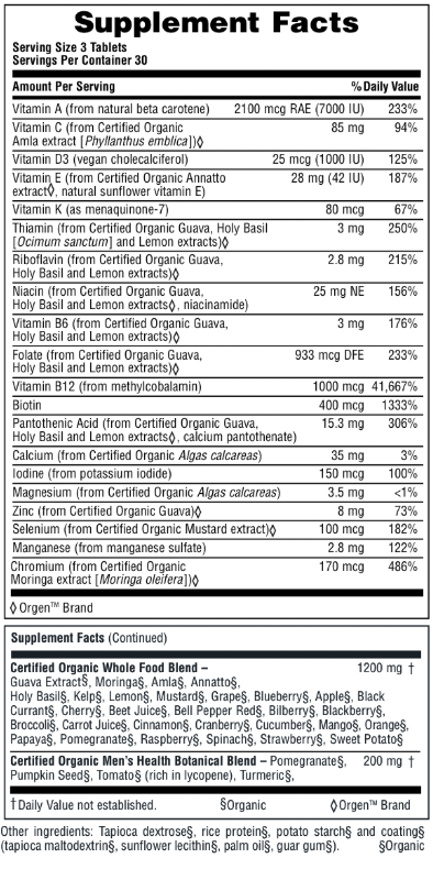 Source of Life Garden Men’s Multivitamin은 유기농 인증 + 비건 포뮬러로 구성된 남성용 멀티비타민입니다.