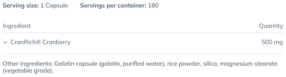 CranRich는 크랜베리의 건강 증진 성분을 고농도로 함유한 우수한 보충제이다. 이 제품은 36:1의 농축 비율을 가진 강력한 크랜베리 파우더를 제공한다.