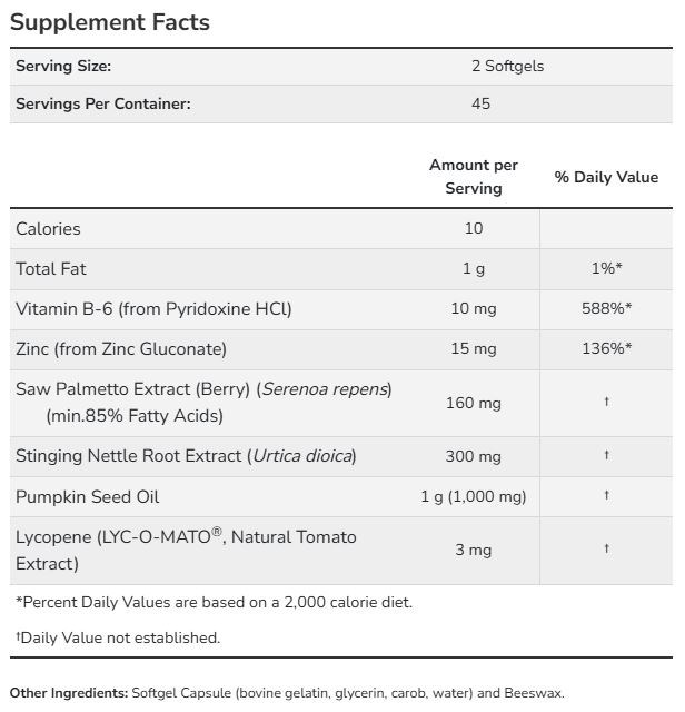 NOW Prostate Support는 표준화된 허브 추출물과 영양소들을 조합한 남성 전립선 건강 지원 제품으로 쏘팔메토는 임상 연구에서 전립선 기능을 돕는 것으로 밝혀졌고, 여기에 호박씨 오일, 아연, 비타민 B6, 라이코펜 같은 영양 성분도 추가로 들어 있어 효과를 높인 제품입니다.