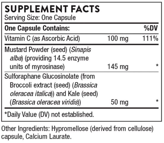 - Myrosinase (from Mustard Powder): 겨자 씨앗(145mg)에서 유래된 효소로, 장에서 SGS를 sulforaphane으로 변환시켜 흡수율 최적화.