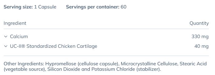 UC-II는 닭 가슴연골(흉골 연골)에서 추출한 형태의 변성되지 않은(천연 상태 그대로) 제2형 콜라겐이다. 이 성분은 면역계와 함께 작용해서 건강한 관절을 지원해준다.임상 연구에 따르면, 하루 단 한 알 40mg의 UC-II만으로도 → 관절의 편안함을 촉진하고, → 관절 기능과 유연성을 건강하게 유지하는 데 도움을 줄 수 있다고 밝혀졌다.