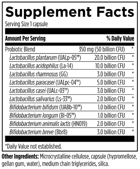 이 제품은 캡슐 하나에 10종의 유익균 500억 마리(50 Billion CFU)를 함유하고 있습니다. 단순히 수만 채운 것이 아니라, 위산과 담즙산에서도 살아남아 장벽에 탄탄하게 붙는 생존력 높은 균주들로만 구성되어 있어 장 건강과 면역력을 함께 관리하는데 최고의 선택이 될 것입니다.