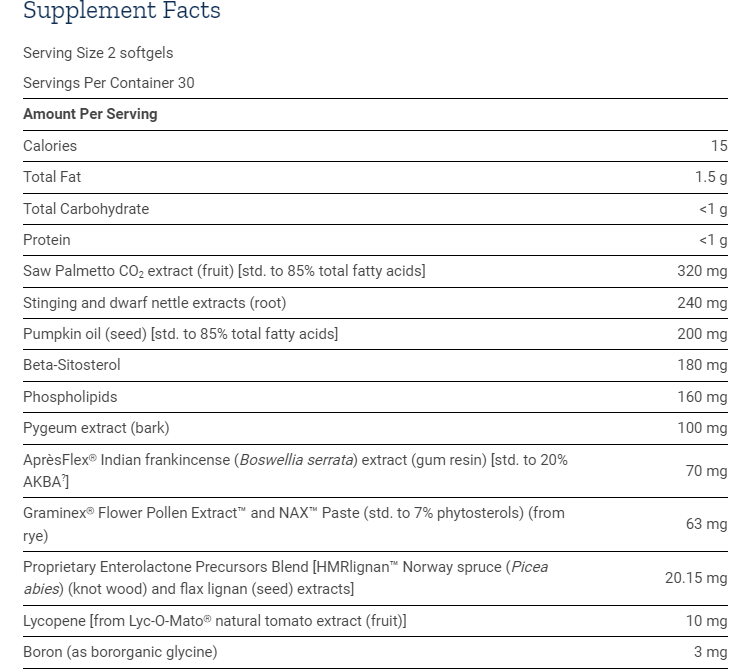 남성들은 나이가 들수록 전립선 건강을 유지하는 것이 중요하다. 전립선과 요로 건강 및 호르몬 균형을 좋게하며 염증 반응에 효과적인 제품이다.