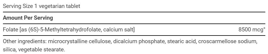 - 8500mcg의 생체 이용 가능한 5-MTHF 엽산 제공