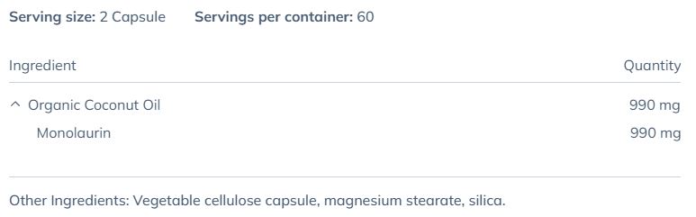 Monolaurin (모노로린)은 코코넛 오일과 야자열매 오일과 모유에도 들어있는 성분으로 강력한 항박테리아, 항바이러스 작용이 있어 감기, 독감, 헤르페스와 여러 가지 감염에 효과적이다.