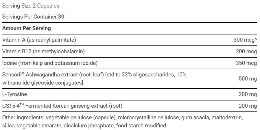 갑상선 지원 복합제는 아슈와간다, 요오드, 고려인삼 등을 결합하여 갑상선 호르몬의 건강한 생성과 활성 상태로의 전환을 촉진합니다. 또한, 이 포뮬러에는 건강한 갑상선 활동을 위한 비타민 B12와 건강한 혈청 T3(활성 갑상선 호르몬) 수치를 지원하는 비타민 A가 포함되어 있습니다.
