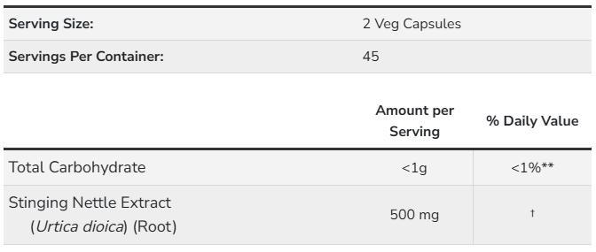- 전립선 건강 지원 (Supports Prostate Health): 쐐기풀 뿌리 추출물은 남성 전립선 건강을 지원하는 데 도움을 줄 수 있 것으로 알려져 있습니다.